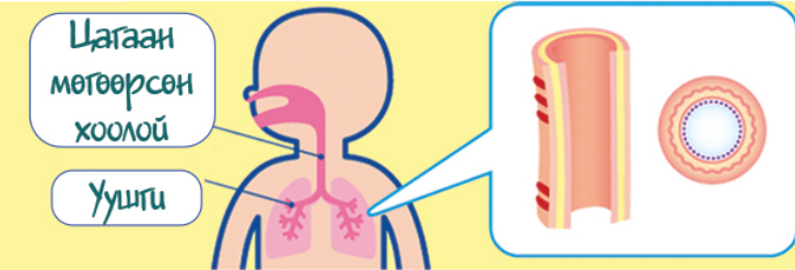 - Ханиахад гадагшлахгүй байж уушги, гуурсан хоолойд гацах