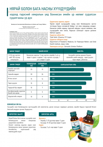 Боннисан нь 5000 жилийн Аюурведийн уламжлалт ургамлын найрлагатай, ходоод гэдэсний үйл ажиллагааг дэмжихэд зориулагдсан нэмэлт бүтээгдэхүүн юм.
