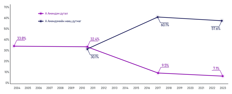 Сүүлийн жилүүдэд хүүхдүүдийн жин 2 дахин нэмэгдэж эсэргээрээ далд өлсгөлөн буюу аминдэмийн дутагдалд өртөж байгааг Монгол улсын хоол тэжээлийн үндэсний 6р судалгаанаас гаргасан байна.